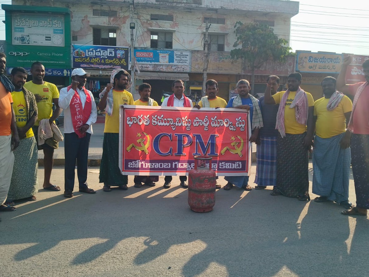 GDWL: అంతర్జాతీయ మహిళా దినోత్సవం వేళ వంట గ్యాస్ ధరలు పెంచి ఆడబిడ్డల కడుపు కొట్టడమే కేంద్ర ప్రభుత్వం ఇచ్చే కానుకనా అని సీపీఎం జిల్లా కార్యదర్శి ఏ. వెంకటస్వామి పేర్కొన్నారు. ఆదివారం గద్వాల జిల్లా కేంద్రంలో గ్యాస్ ధరల పెరుగుదలకు నిరసనగా ధర్నా చేపట్టారు. బీజేపీ అధికారంలోకి వచ్చాక పెట్రోల్, డీజిల్, గ్యాస్ ధరలు నిరంతరాయంగా పెరుగుతున్నాయన్నారు.
