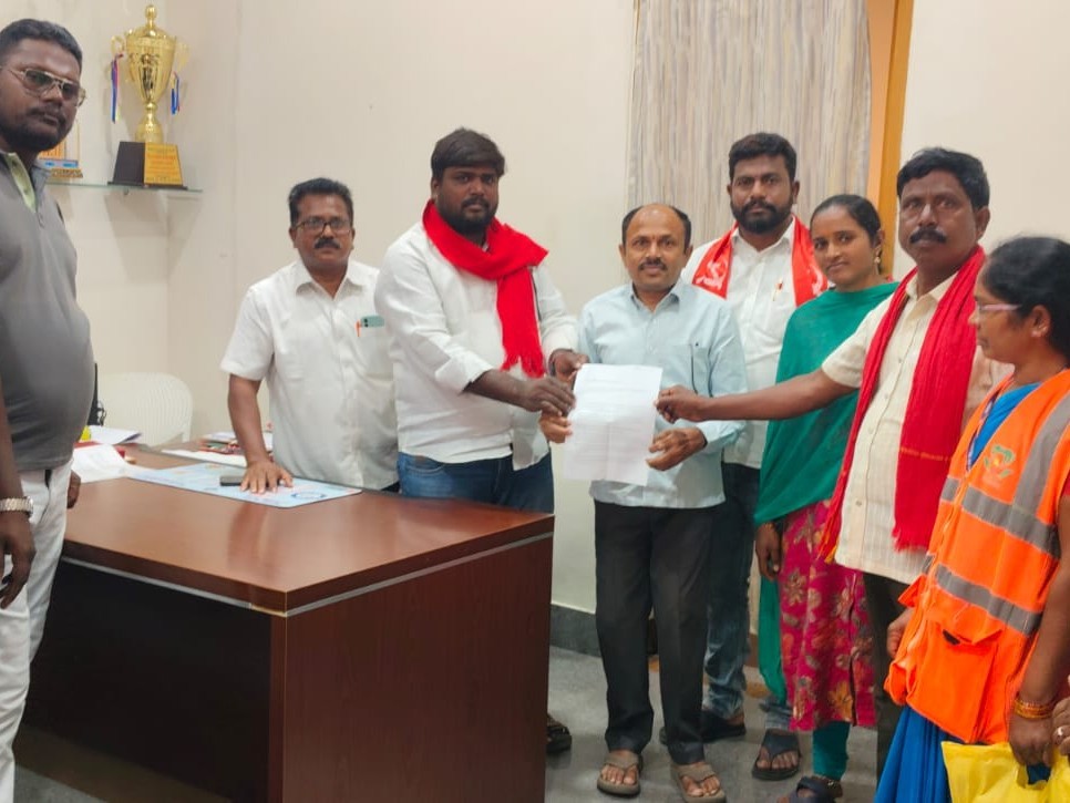 HNK: మున్సిపల్ కార్మికులను పర్మినెంట్ చేయాలని డీఆర్ఓకు సీఐటీయూ నేతలు వినతిపత్రం అందజేశారు. తెలంగాణ రాష్ట్రంలో ఉన్న మున్సిపల్ కాంట్రాక్ట్ ఔట్సోర్సింగ్ కార్మికులందరికీ కనీస వేతనం 26 వేలు ఇవ్వాలని కోరారు. 2వ పీఆర్సీలో నిర్ణయించి అమలు చేయాలని, కార్మికుల సంక్షేమానికి ప్రభుత్వాలు ప్రత్యేక చర్యలు చేపట్టాలని నేతలు డిమాండ్ చేశారు.