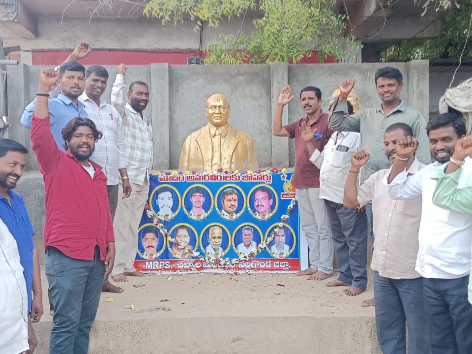 NLG: ఎస్సీ వర్గీకరణ కోసం ప్రాణాలర్పించిన మాదిగ అమరవీరులు పొన్నాల సురేంద్ర, దామోదర్, మహేష్, భారతిల చిత్రపటాలకు చిట్యాలలో ఎమ్మార్పీఎస్ నేతలు ఆదివారం పూలమాలలు వేసి నివాళులర్పించారు. దశాబ్దాలుగా ప్రభుత్వాలు కాలయాపన చేస్తూ మాదిగలను మోసం చేస్తున్నాయని, ఇప్పటికైనా పార్లమెంట్లో చట్టబద్ధత కల్పించాలని ఎరసాని గోపాల్, మేడి శంకర్ డిమాండ్ చేశారు.