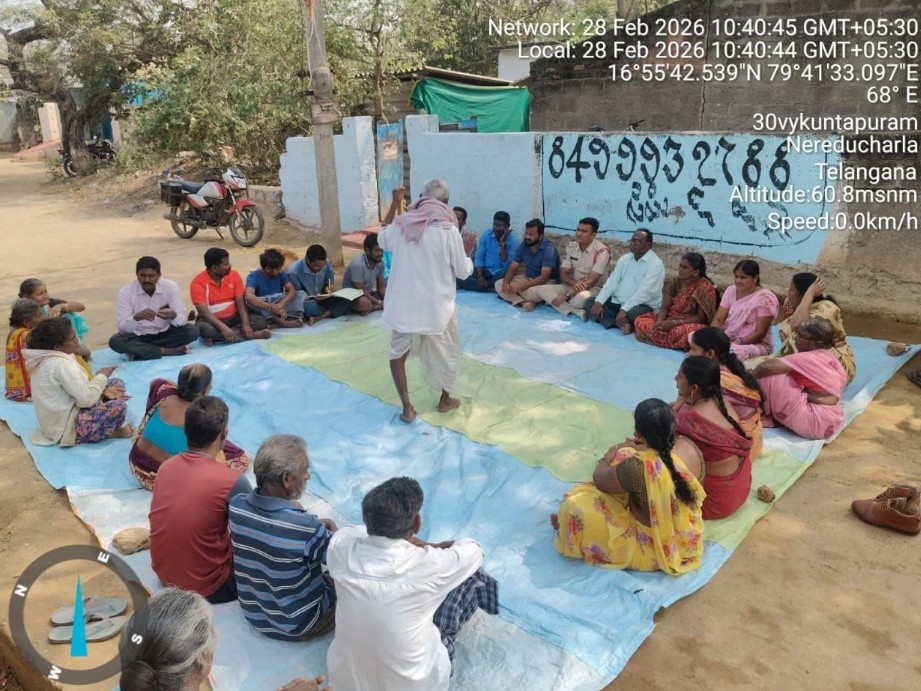 SRPT: నేరేడుచర్ల మండలం వైకుంఠాపురం గ్రామంలో పౌర హక్కుల దినోత్సవం సందర్భంగా శనివారం ప్రత్యేక సమావేశాన్ని నిర్వహించారు. బడుగు, బలహీన వర్గాల హక్కులకు భంగం కలగకుండా చూడటమే లక్ష్యంగా ఈ శిబిరాన్ని ఏర్పాటు చేశారు. గ్రామస్తుల సమస్యలను వారి వద్దకే వెళ్లి తెలుసుకుని, తక్షణ పరిష్కారం చూపే దిశగా అధికారులు చర్యలు చేపట్టారు. ఈ కార్యక్రమంలో సర్పంచ భవాని, అధికారులు పాల్గొన్నారు.