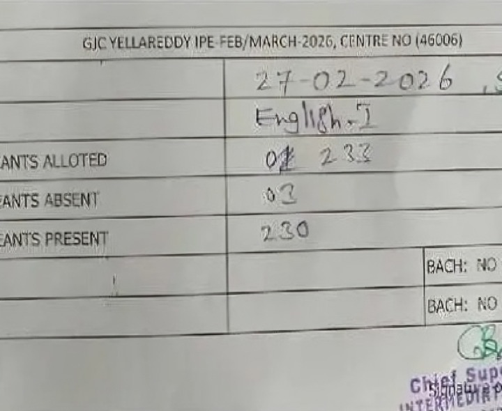 KMR: ఎల్లారెడ్డి ప్రభుత్వ జూనియర్ కళాశాలలో శుక్రవారం జరిగిన ఇంటర్ ప్రథమ సంవత్సర పరీక్షలు ప్రశాంతంగా కొనసాగాయి. ఇంగ్లిష్ సబ్జెక్టుకు సంబంధించి అధికారులు ‘సెట్-C’ ప్రశ్నాపత్రాన్ని ఎంపిక చేశారు. మొత్తం 233 మంది విద్యార్థులకు గాను 230 మంది హాజరు కాగా, ముగ్గురు విద్యార్థులు గైర్హాజరయ్యారని అధికారులు వెల్లడించారు.