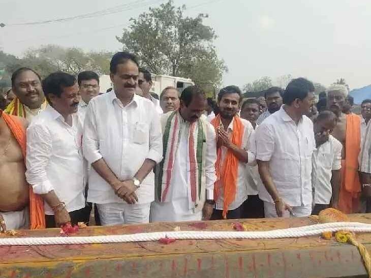 KMM: ఏదులాపురం మున్సిపాలిటీలోని వెంకటగిరిలో శ్రీ గోవింద మాంబ సమేత జగద్గురు మద్విరాట్ పోతులూరి వీరబ్రహ్మేంద్రస్వామి శిఖర కలశ ధ్వజస్తంభ ప్రతిష్ఠ మహోత్సవ కార్యక్రమం నిర్వహించారు. ఈ కార్యక్రమంలో రాష్ట్ర గిడ్డంగుల సంస్థ ఛైర్మన్ రాయల నాగేశ్వరరావు పాల్గొని ప్రత్యేక పూజలు చేశారు. ఈ కార్యక్రమంలో డీసీసీ మాజీ అధ్యక్షుడు పువ్వాళ్ళ, భక్తులు పాల్గొన్నారు.