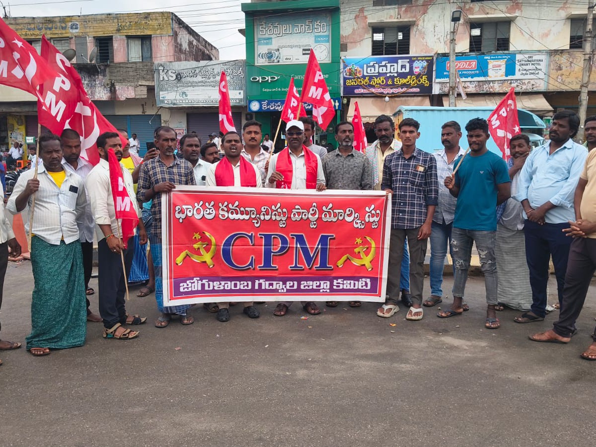 GDWL: అన్యాయంగా పసిపాపను చంపిన హంతకులకు పోలీసులు కొమ్ముకాస్తున్నారు అని సీపీఎం జిల్లా కార్యదర్శి ఏ. వెంకటస్వామి పేర్కొన్నారు. మంగళవారం గద్వాల పాత బస్టాండ్ వద్ద నిరసన కార్యక్రమాన్ని చేపట్టారు. ఆయన మాట్లాడుతూ.. కుమ్మేర జాతరలో చిన్నారి మృతికి కారకులైన వారిని వెంటనే కఠినంగా శిక్షించాలని పేర్కొన్నారు. విచారణను తప్పుదోవ పట్టిస్తున్న అధికారులపై చర్యలు తీసుకోవాలన్నారు.