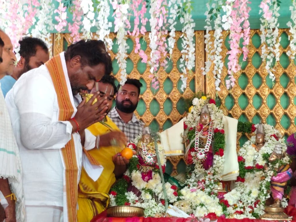 PDPL: శ్రీరామనవమి సందర్భంగా రాష్ట్ర సాంఘిక సంక్షేమ శాఖ మంత్రి లక్ష్మణ్ కుమార్ ధర్మారం మండల కేంద్రంలోని రామాలయంలో ప్రత్యేక పూజలు నిర్వహించారు. ఆయనకు ఆలయ నిర్వాహకులు ఘన స్వాగతం పలికారు. ప్రత్యేక పూజల అనంతరం మంత్రి సీతారాముల కళ్యాణంలో పాల్గొని, ప్రజలు సుఖసంతోషాలతో జీవించాలని ప్రార్థించారు.
