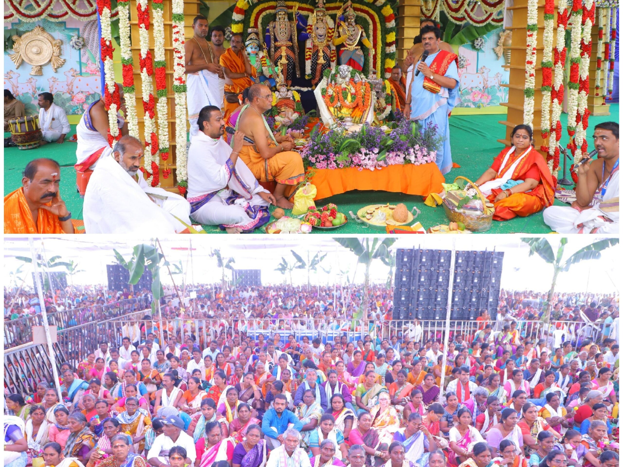 SDPT: హుస్నాబాద్ పట్టంలోని మార్కండేయ స్వామి ఆలయంలో మంత్రి పొన్నం ప్రభాకర్ కుటుంబ సమేతంగా శ్రీ సీతారామచంద్ర స్వామి వారి కళ్యాణంలో పాల్గొన్నారు. వేదమంత్రోచ్చారణల నడుమ స్వామి వారి కళ్యాణాన్ని పండితులు నిర్వహించారు. కార్యక్రమంలో మున్సిపల్ ఛైర్మన్ దండి లక్ష్మి, వైస్ ఛైచైర్మన్ చిత్తారి పద్మ కౌన్సిలర్లు, ఇతర ముఖ్య నేతలు పాల్గొన్నారు.